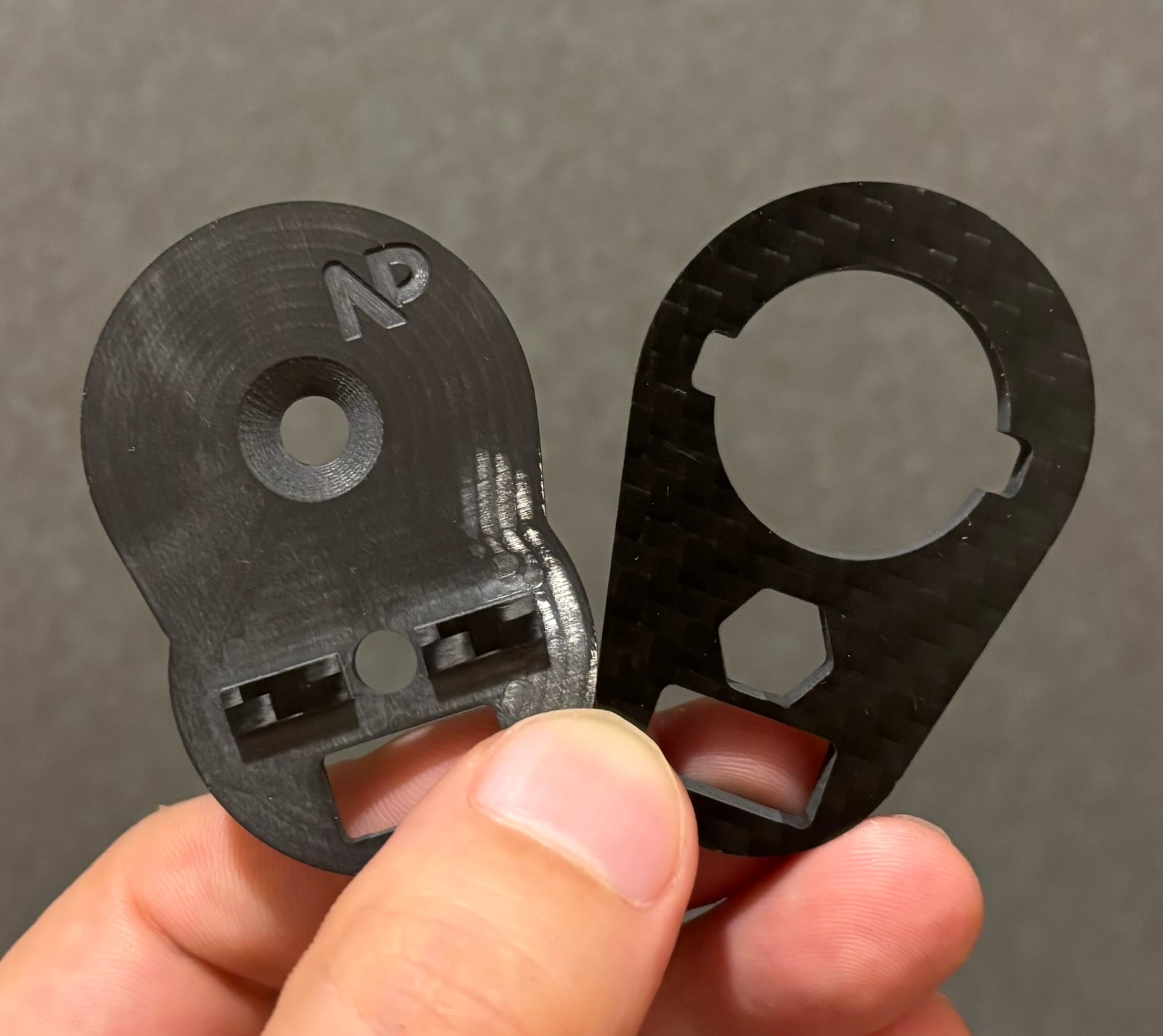 ⇒ドライカーボン&切削加工で【高強度】と【軽量化】を実現しました。